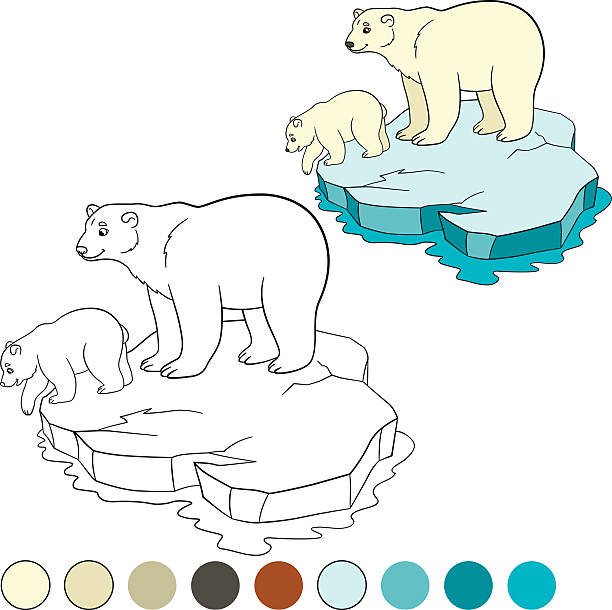 ![Белый медведь на льдине раскраска для детей]()