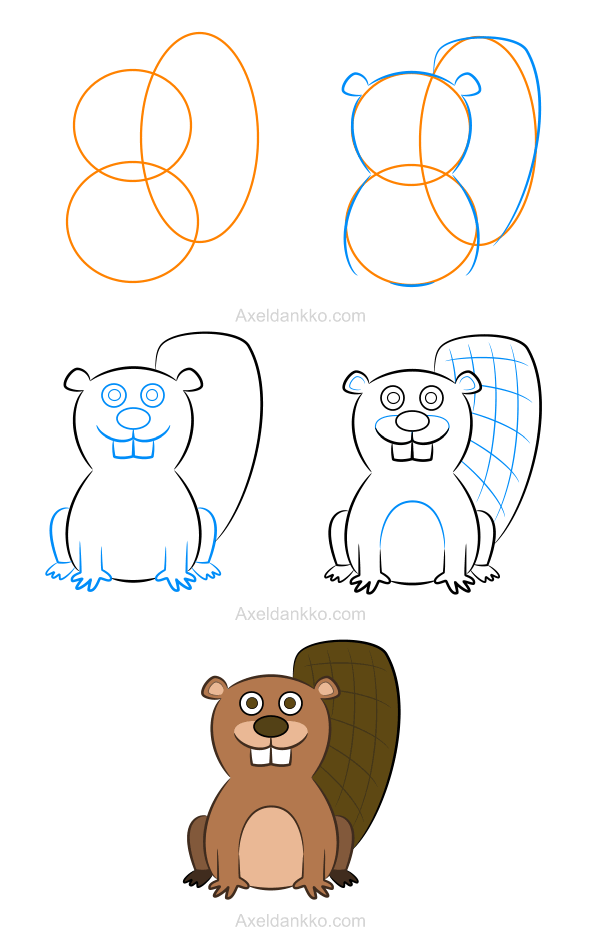 ![Бобер пошагово рисунок]()