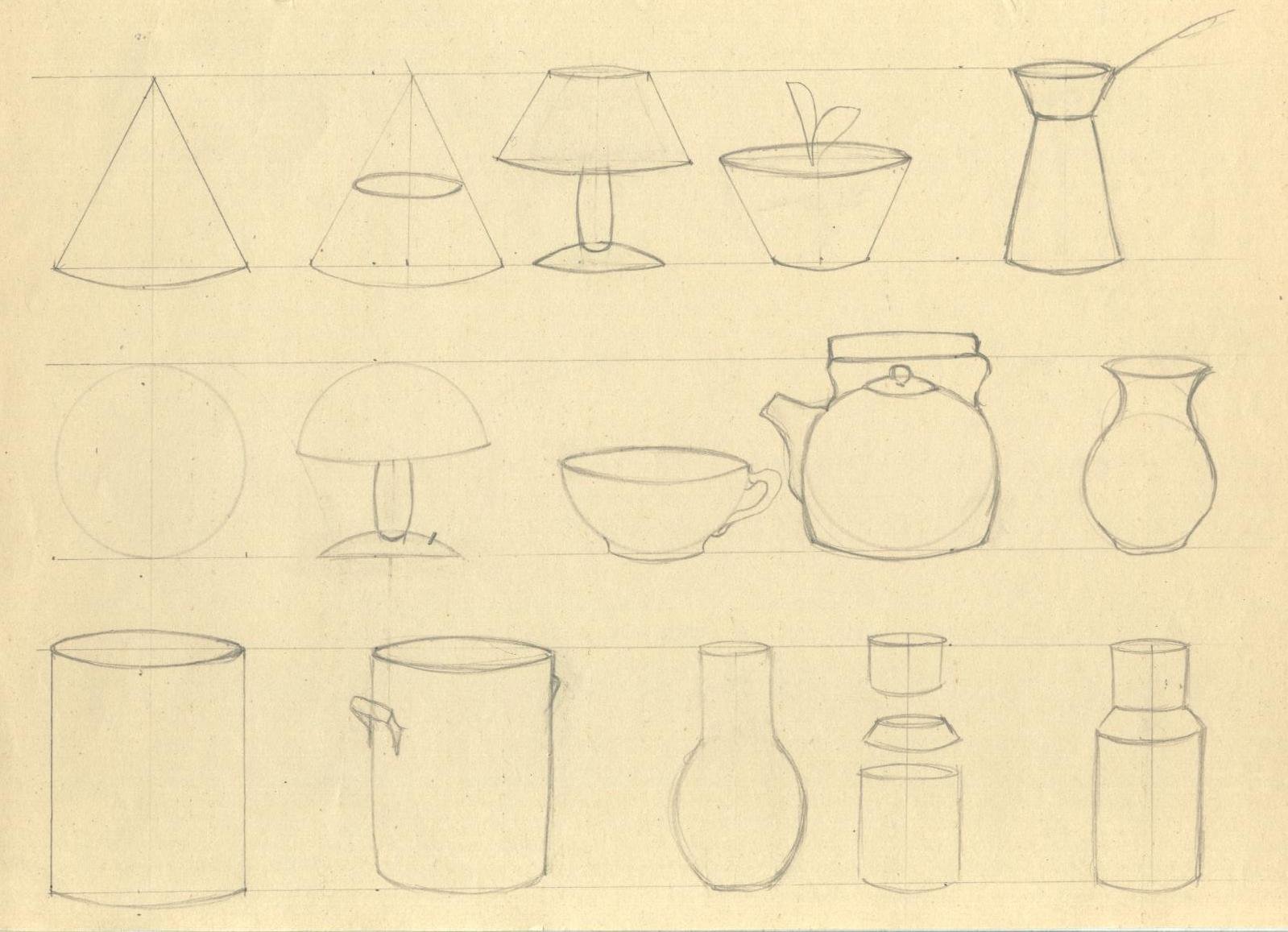![Линейно конструктивное построение натюрморта поэтапно]()