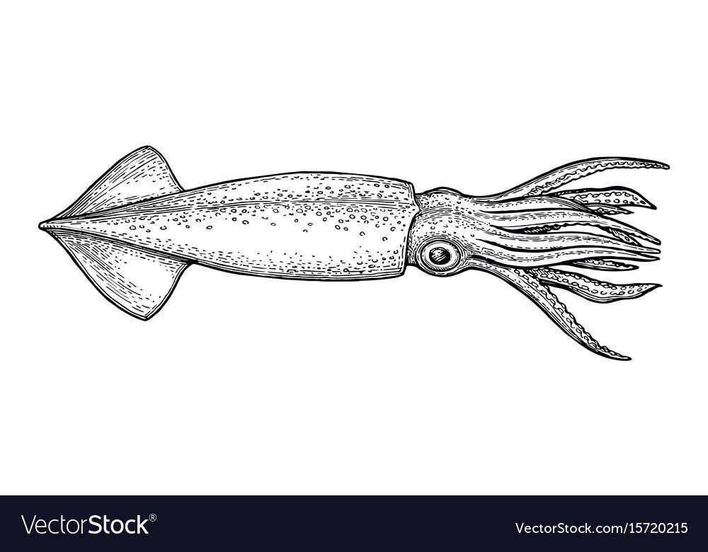 ![Кальмар карандашом]()