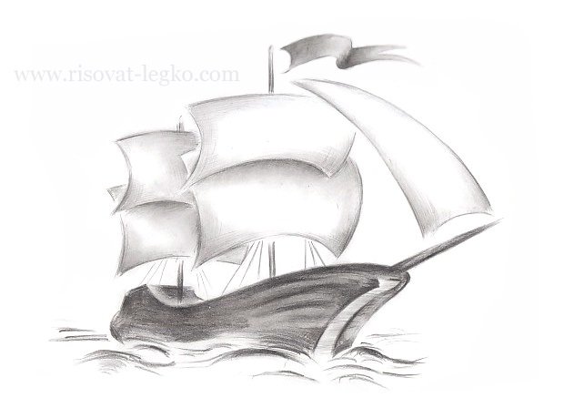 ![Корабль парусник карандашом]()