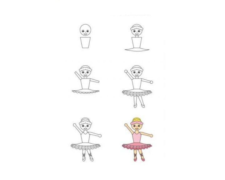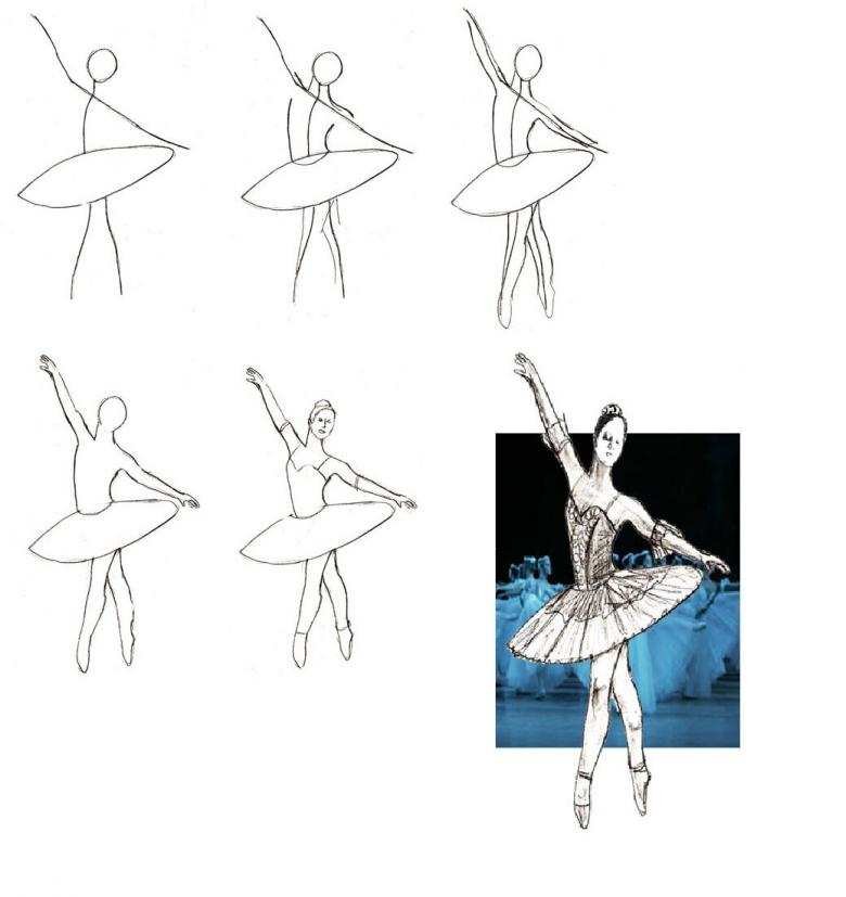 ![Поэтапный рисунок балерины]()
