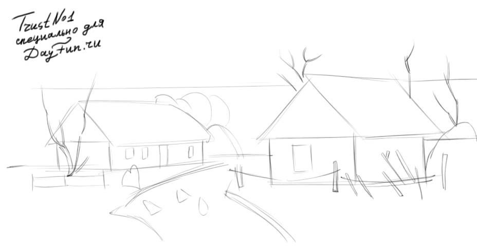 Деревенский пейзаж - это простой и уютный рисунок, который захватывает своей простотой и естественной красотой. Он передает атмосферу спокойствия и умиротворения, перенося нас в мир далекий от суеты городской жизни. В этом пейзаже можно увидеть зеленые луга, окруженные высокими деревьями, протекающую реку или озеро, а возможно и старинный деревенский домик со стопами и цветущим садом. Он приносит чувство прикосновения к природе, ощущение вполне естественной и гармоничной жизни. Деревенский пейзаж - это идеальная тема для создания атмосферного и умиротворяющего рисунка, который подарит нам моменты покоя и вдохновения.