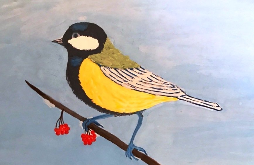 ![Синичка рисунок]()