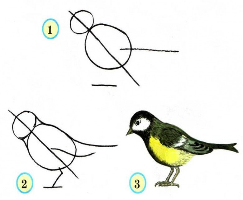 ![Нарисовать синичку карандашом поэтапно для детей]()
