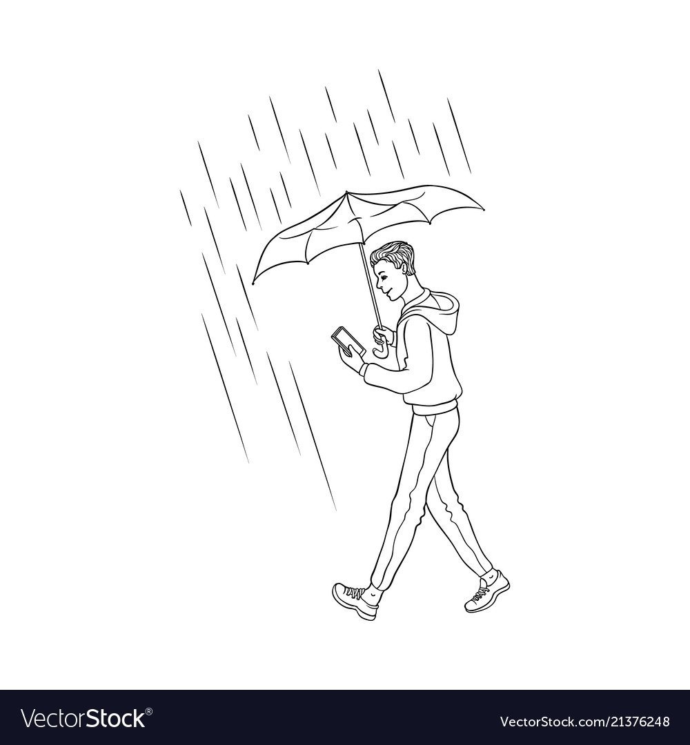 Рисунок "Человек под дождем" - это простое, но вместе с тем выразительное изображение, которое передает особую атмосферу и настроение. На фоне серого неба и капель дождя, мы видим одинокую фигуру человека, который стоит под открытым зонтом. Его силуэт и поза говорят о его усталости и печали. В то же время, несмотря на пасмурную погоду, в рисунке есть что-то тихое и спокойное. Взгляд на этот рисунок позволяет вдохновиться красотой и магией момента, когда человек соединяется с природой и принимает ее во всех ее проявлениях. Этот рисунок привлекает внимание своей простотой и одновременно глубиной, заставляют задуматься о том, что может скрываться за этой одинокой фигурой и какие эмоции он переживает.