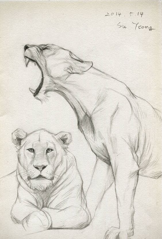 ![Львица рисунок карандашом]()