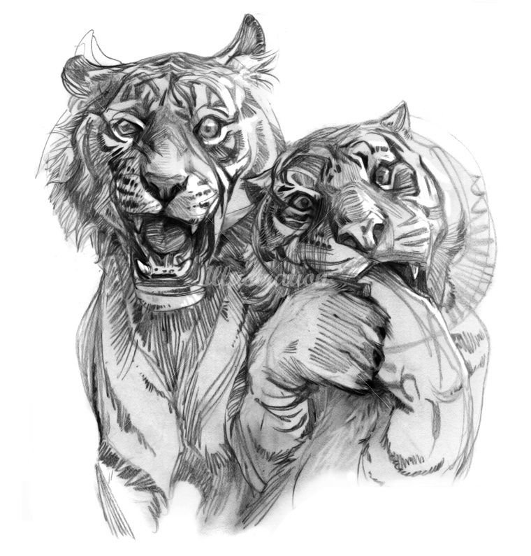 Лев и львица карандашом