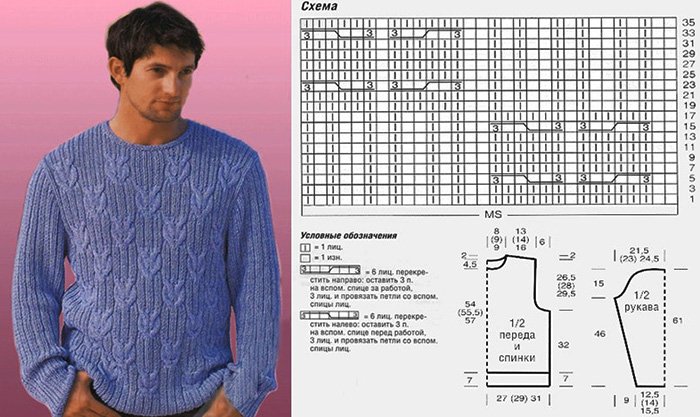 ![Вязание спицами пуловер мужской с описанием и схемой]()