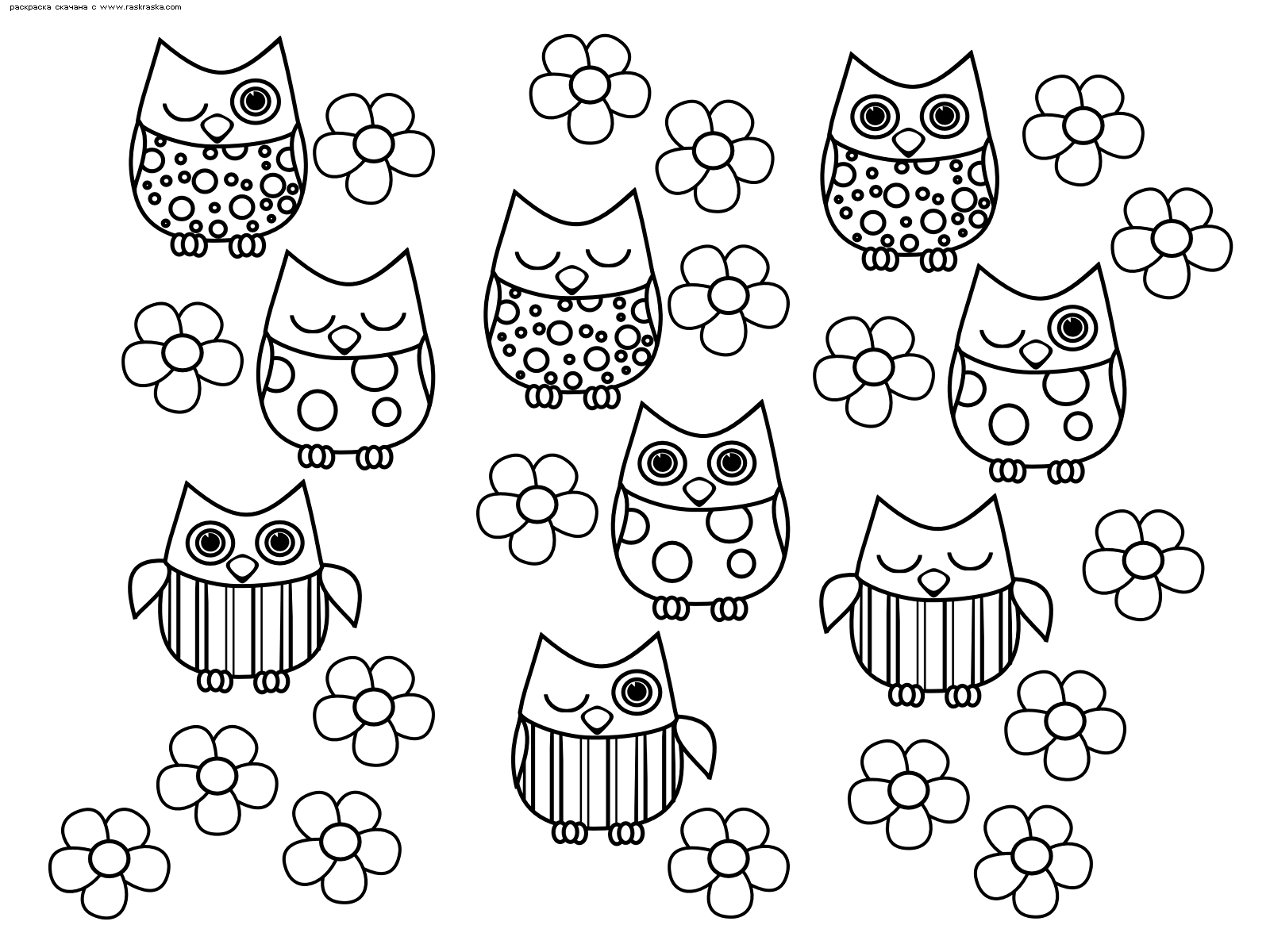 ![Раскраски милые Совята]()