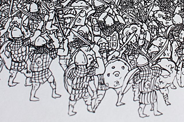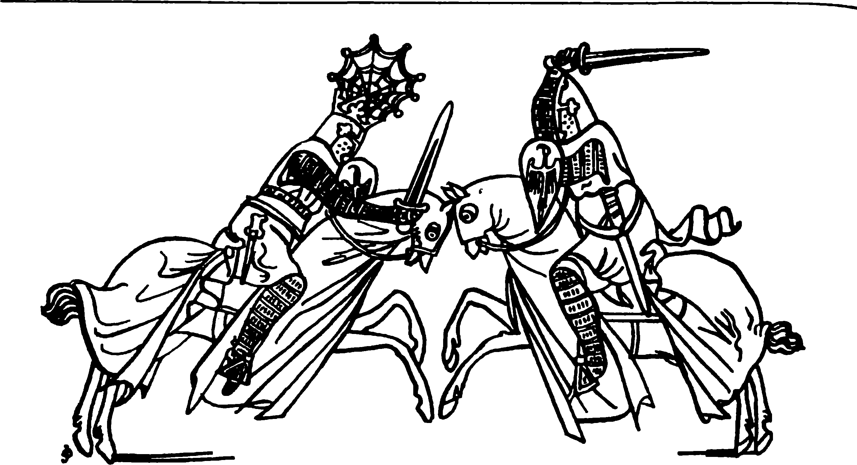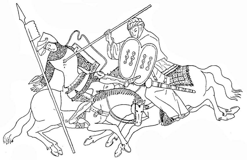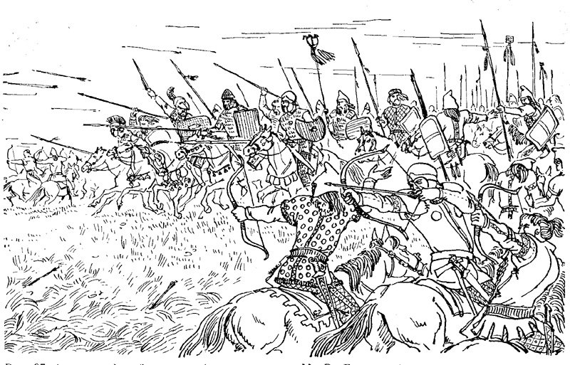 ![Раскраска Куликовская битва Пересвет и Челубей]()