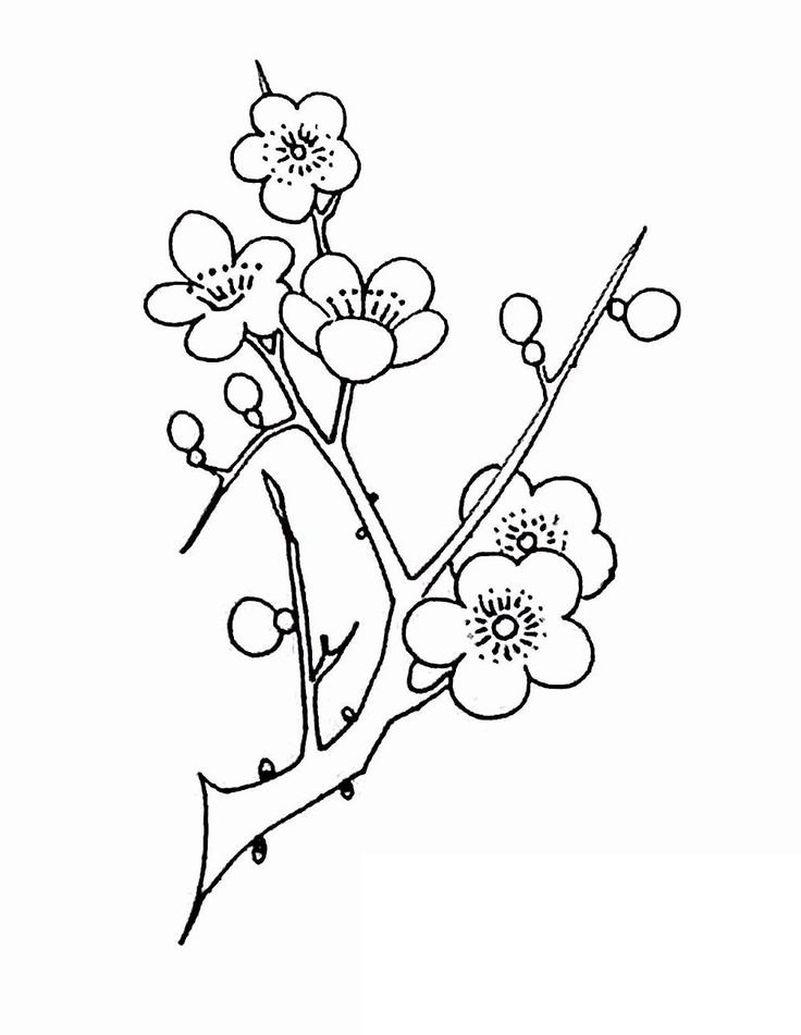 ![Веточка Сакуры раскраска]()