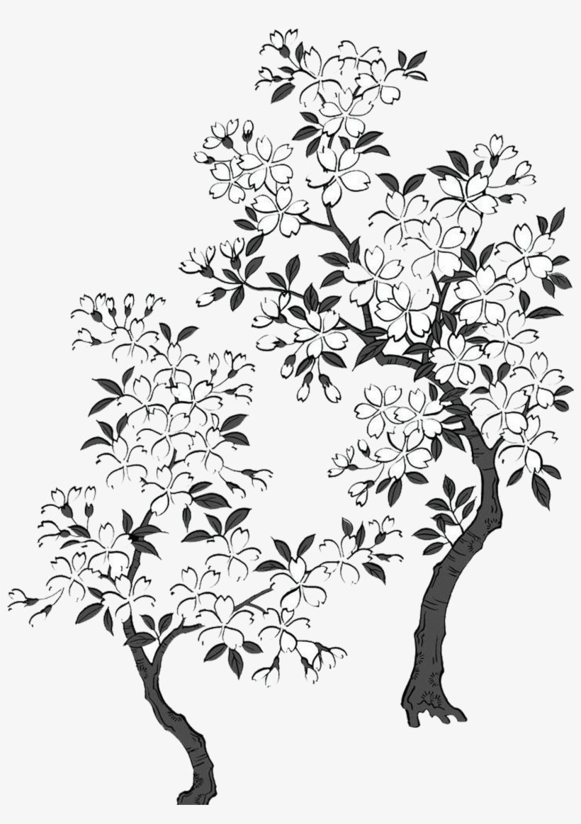 ![Ветка Сакуры черно белая]()