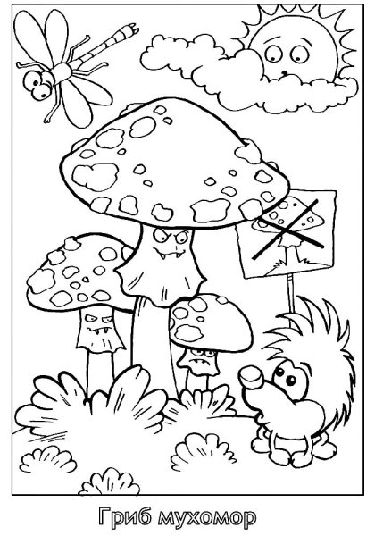 Мухомор раскраска для детей