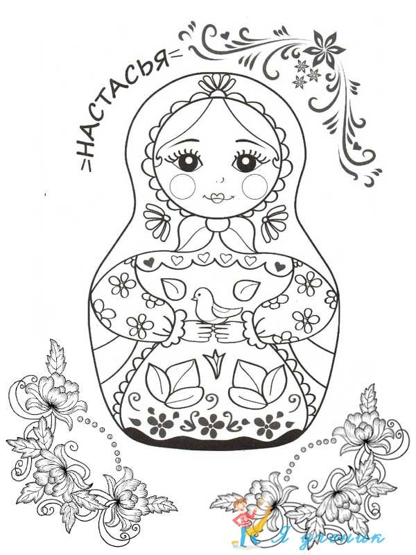 ![Загорская Сергиево-Посадская матрёшка раскраска]()