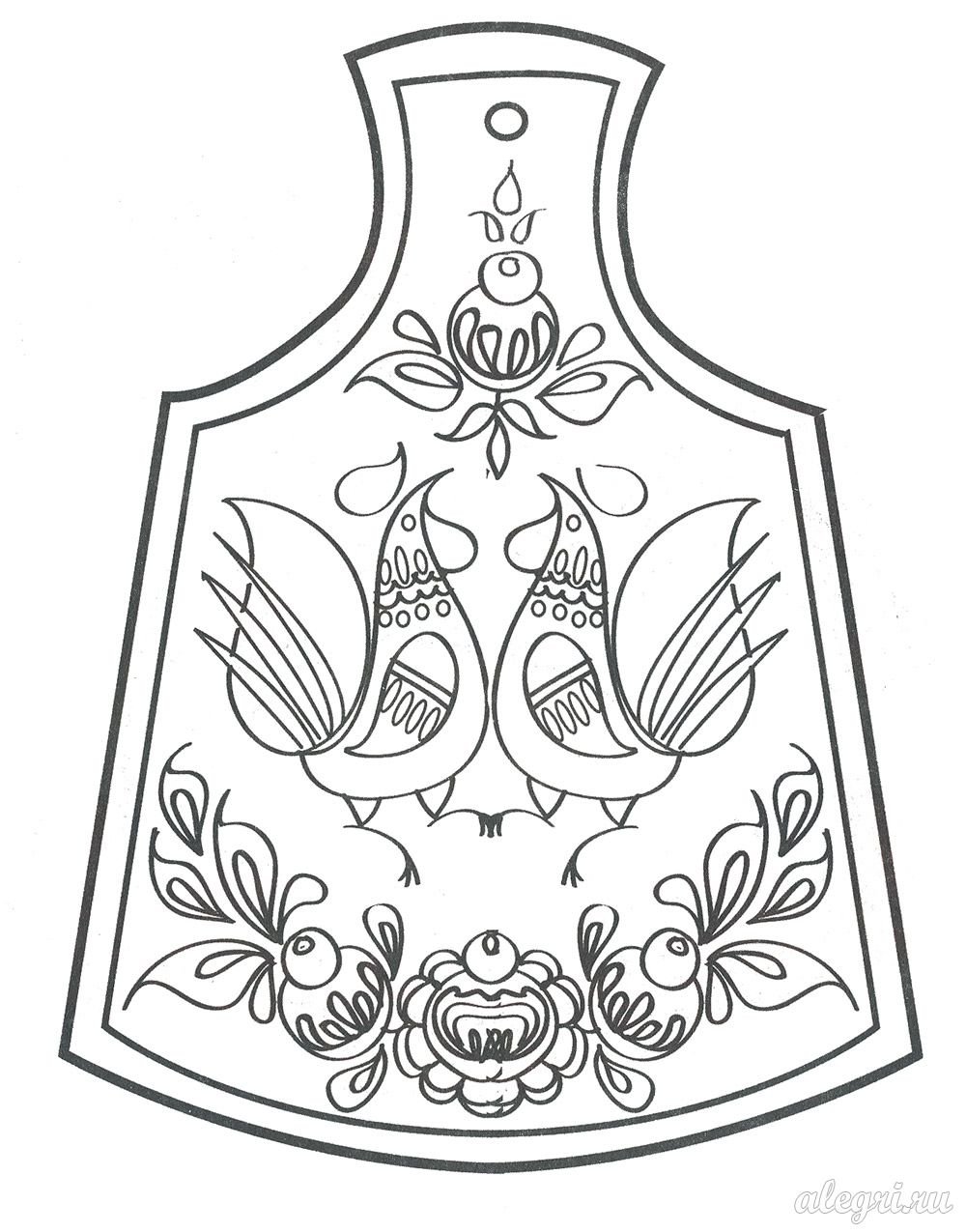 ![Разделочная доска раскраска для детей Городецкая роспись]()