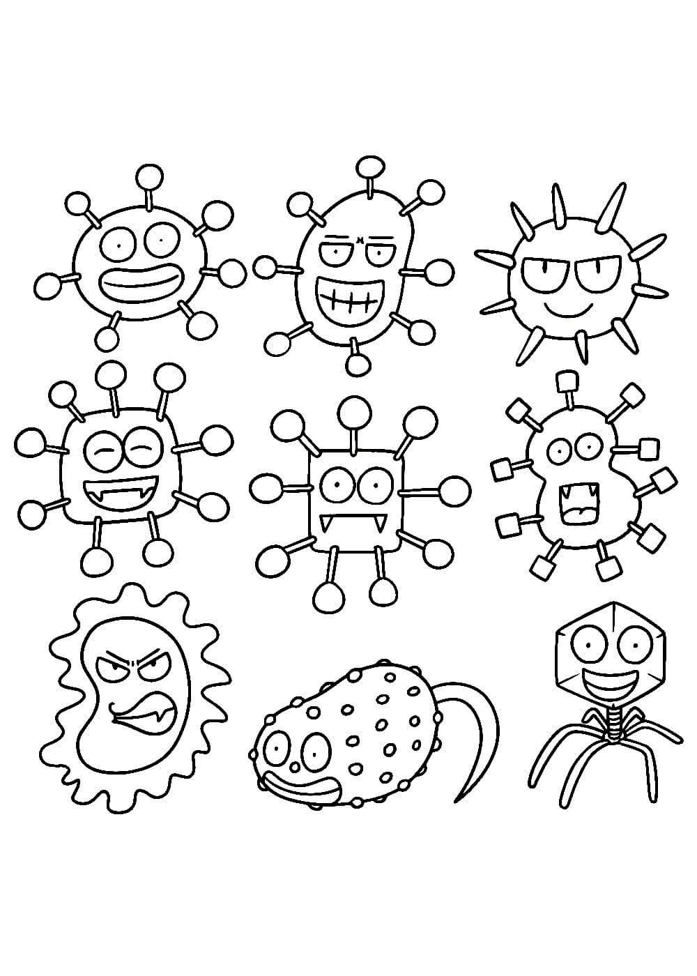 Раскраски вирусы и бактерии для детей