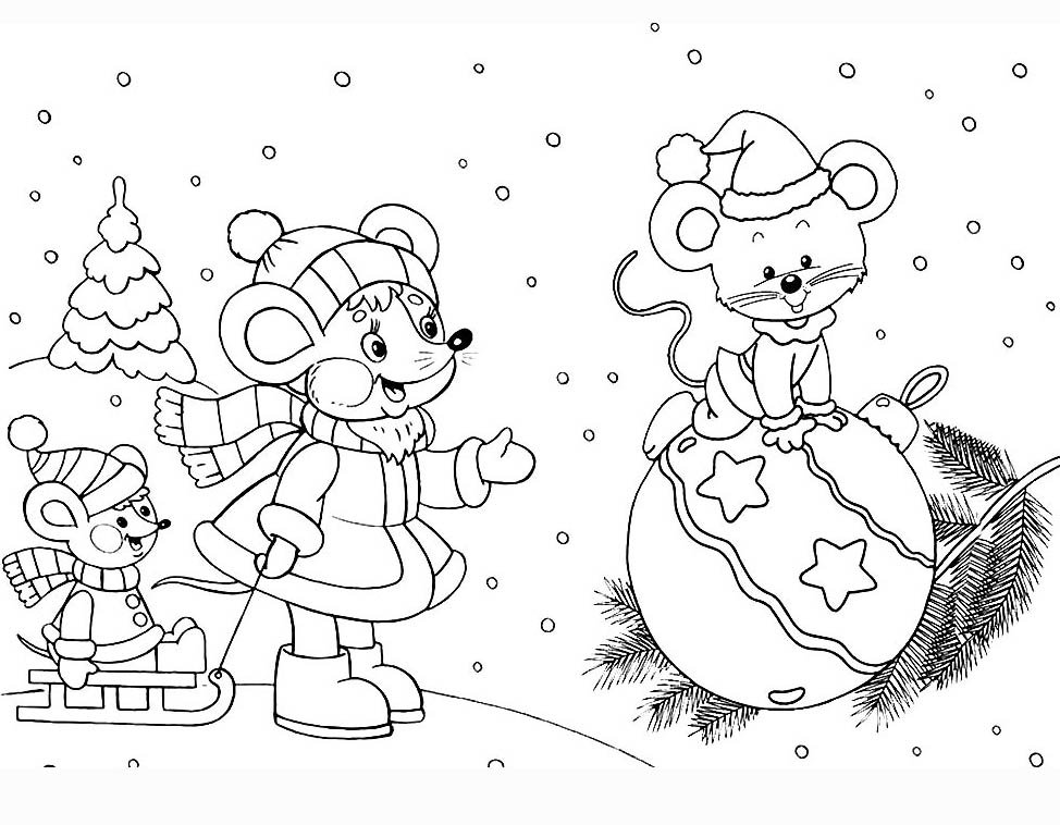Новогодние зверушки раскраска