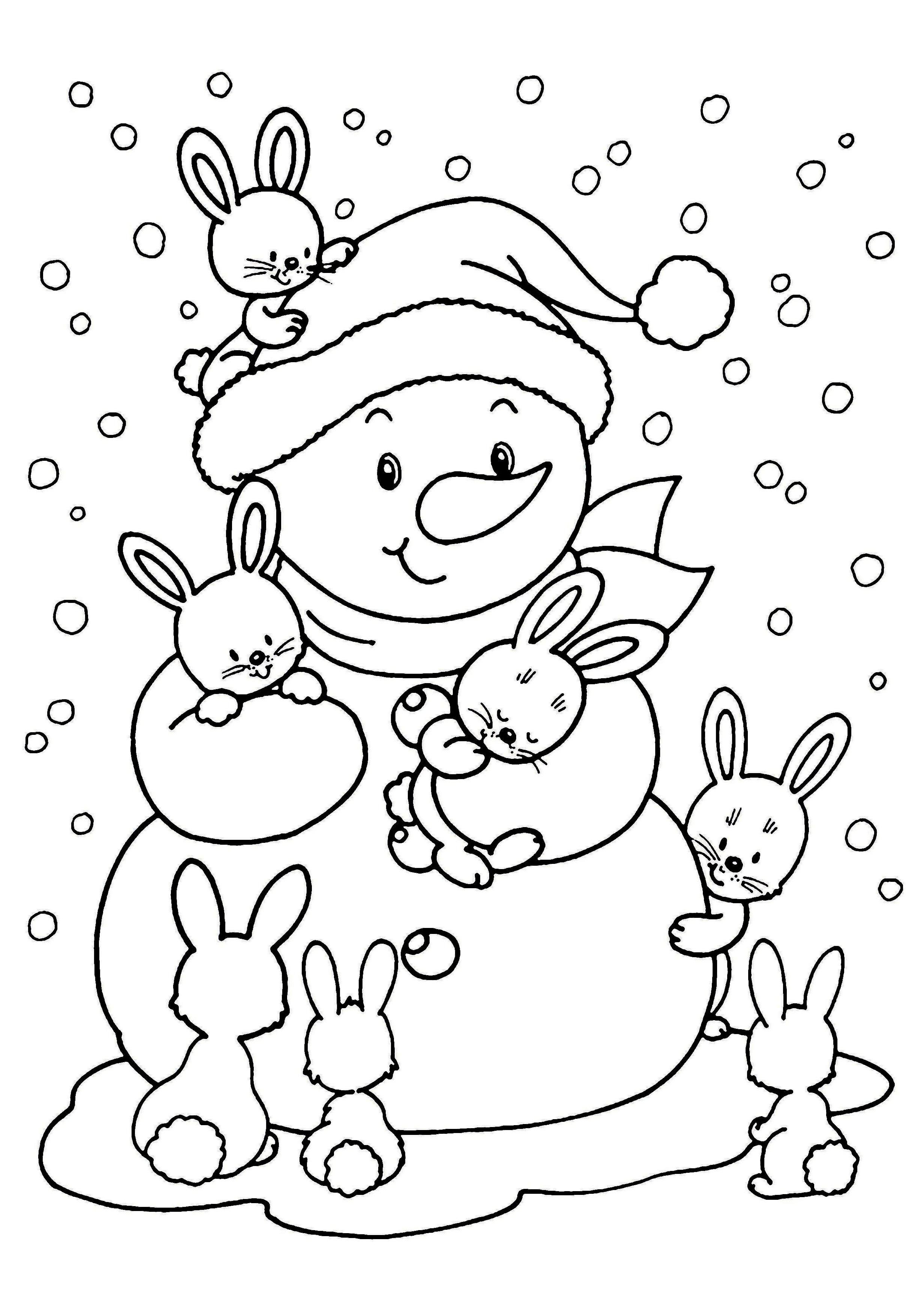 Снеговик раскраска для детей