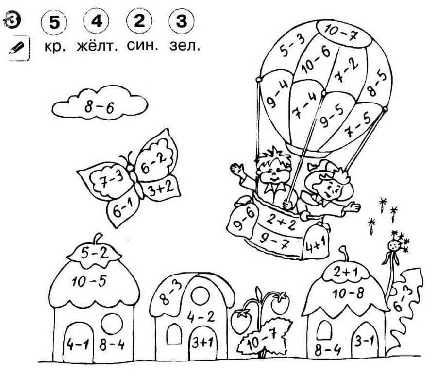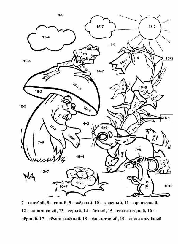 ![Раскраска таблица сложения и вычитания в пределах 20]()