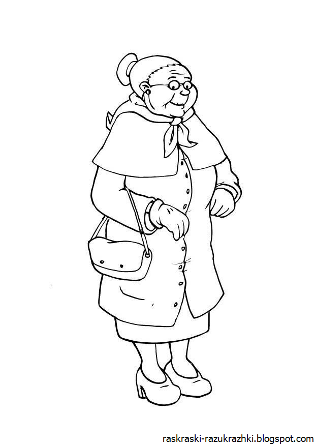 Картинка бабушка раскраска