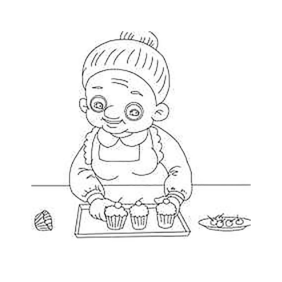 Бабушка с пирогами раскраска