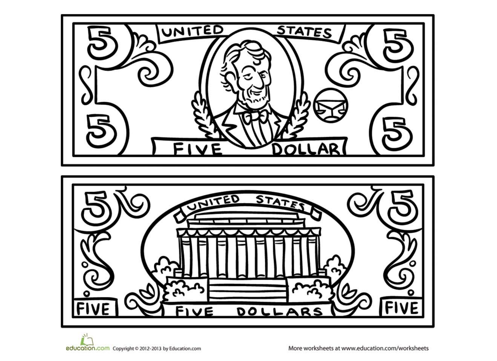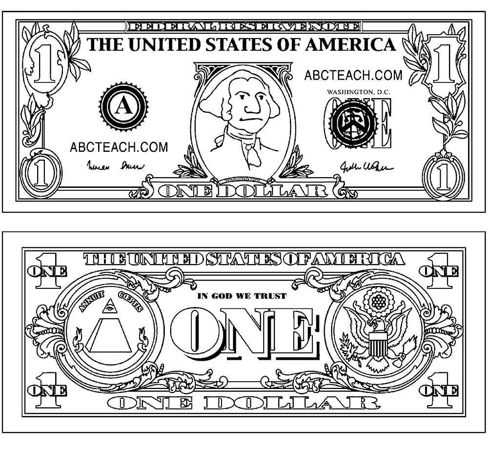 ![Доллар раскраска]()
