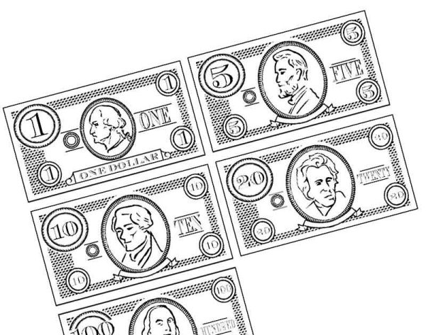Деньги картинки раскраски