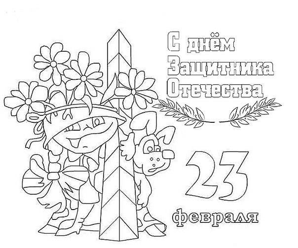 Открытка на 23 февраля раскраска