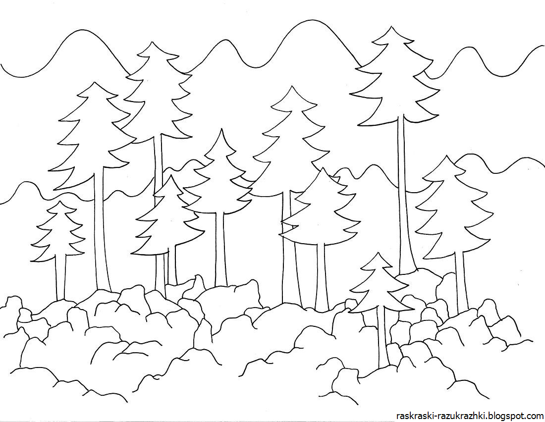 ![Еловый лес раскраска]()