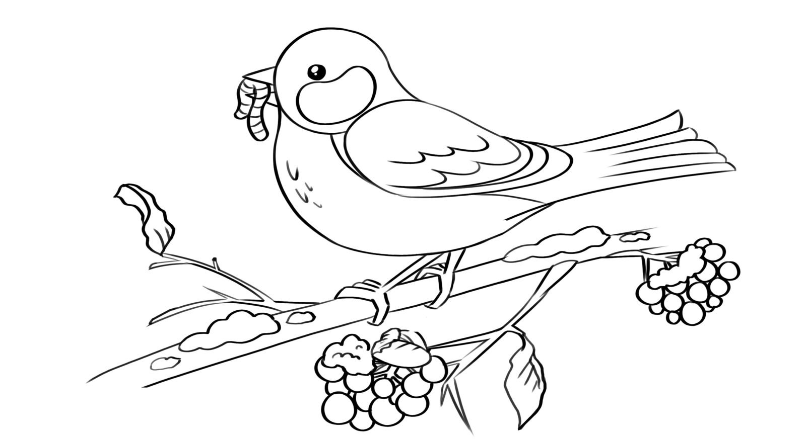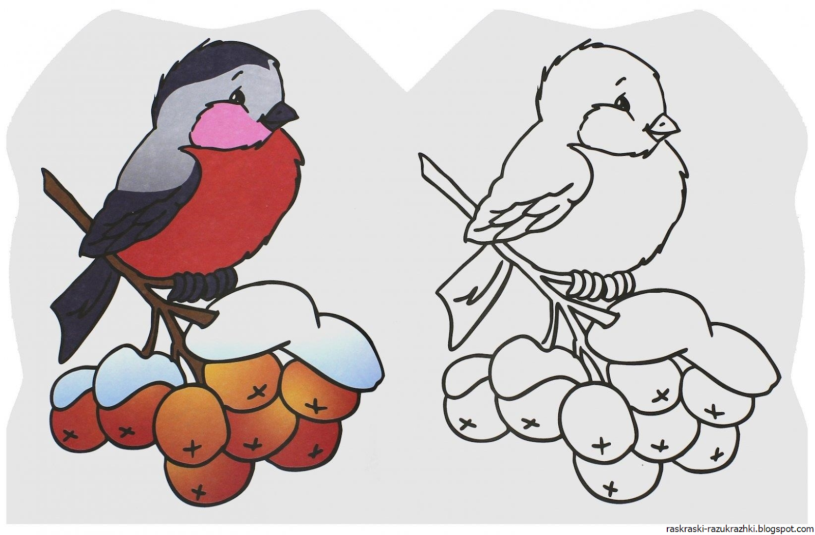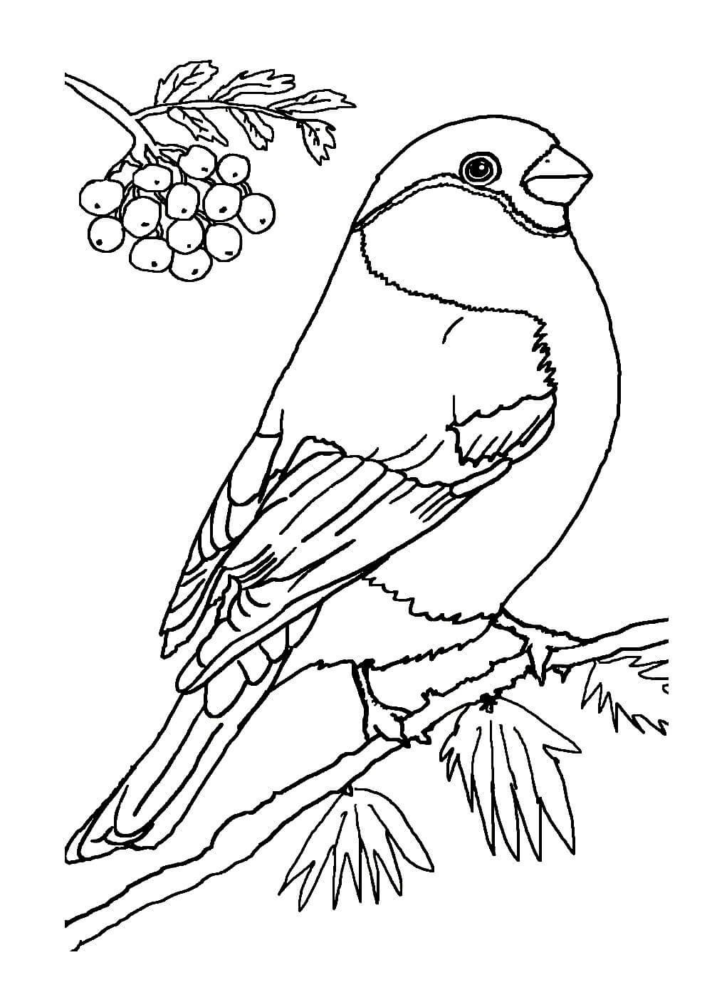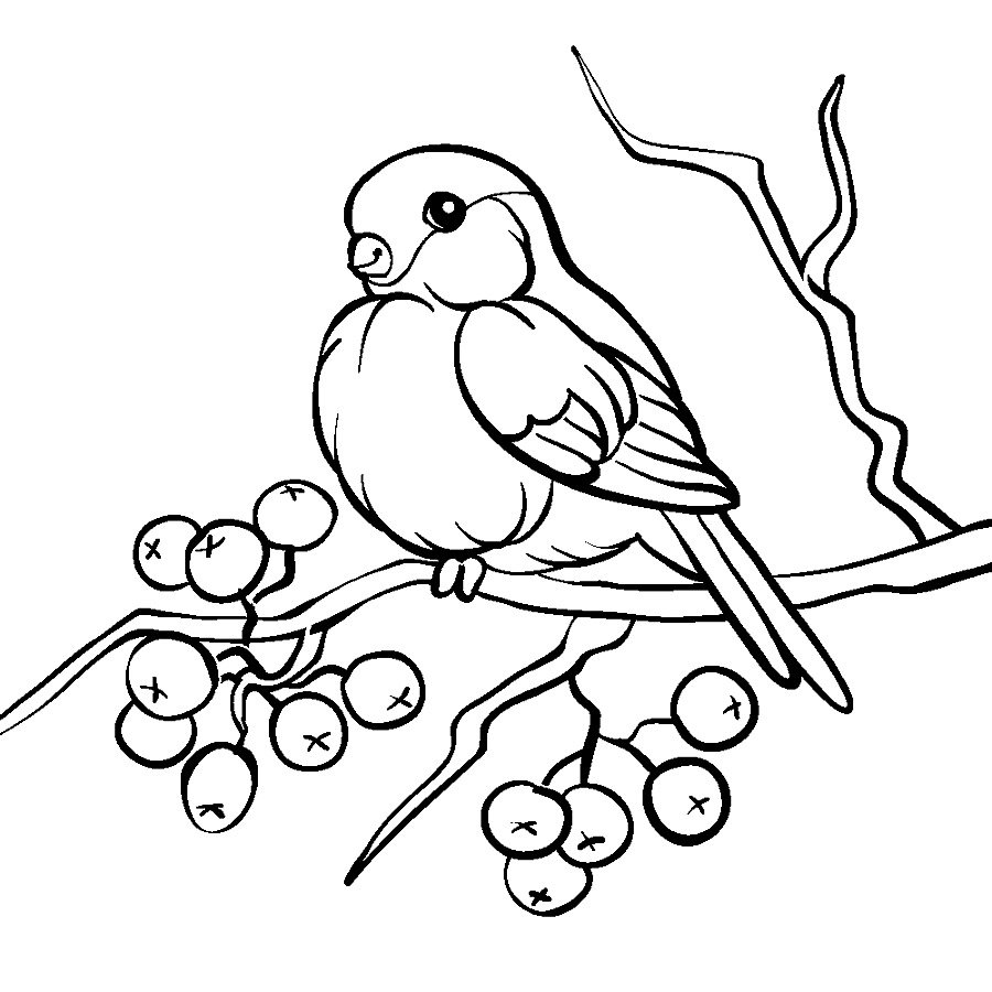 ![Раскраска Снегирь на ветке рябины]()
