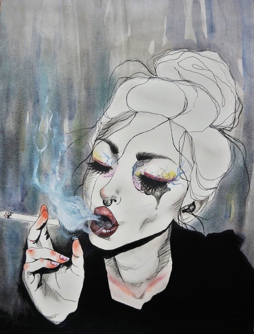 ![Мужчина с сигаретой арт]()