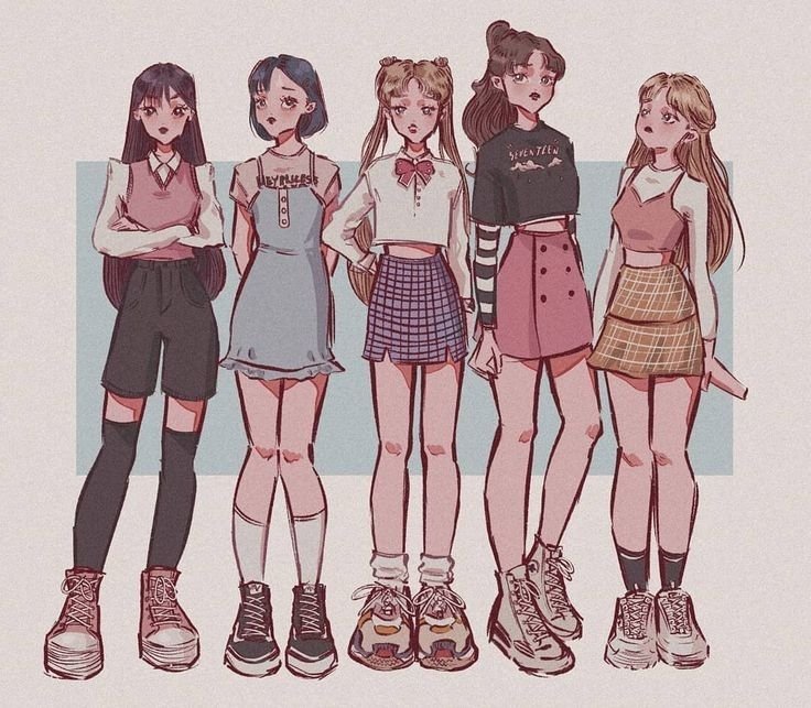 ![Стиль одежды карандашом аниме]()