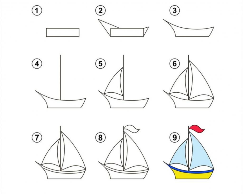 Поэтапное рисование корабля для детей