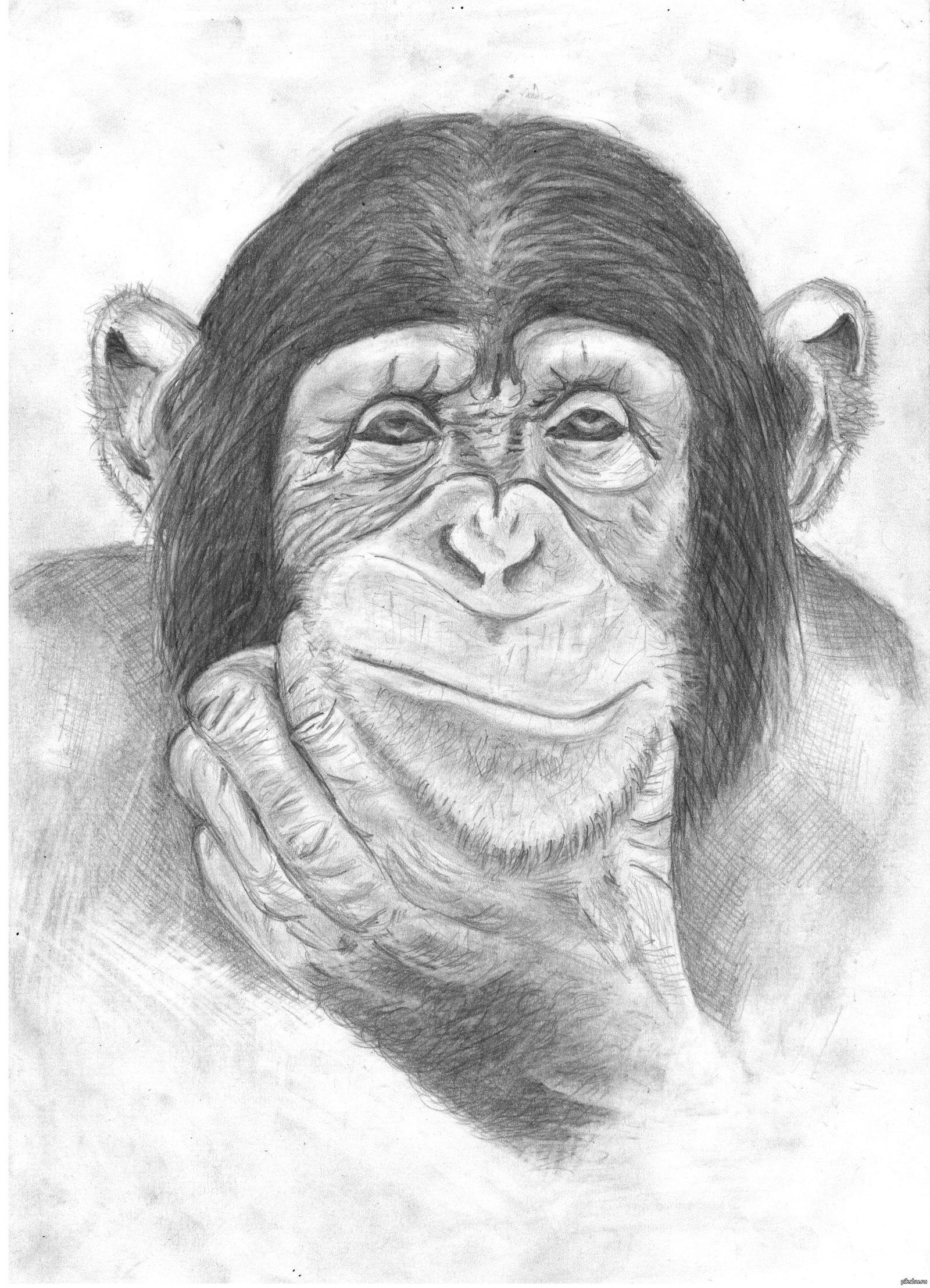 ![Шимпанзе рисунок карандашом]()