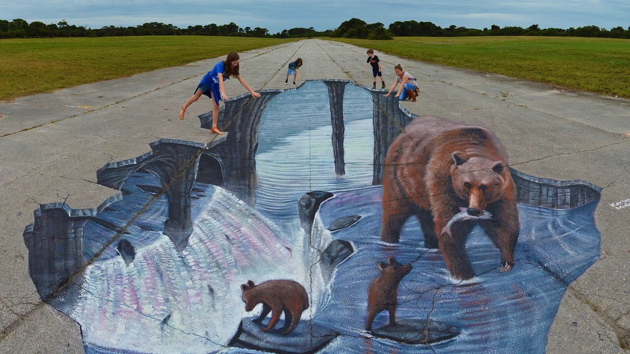 ![Трехмерные рисунки на асфальте]()