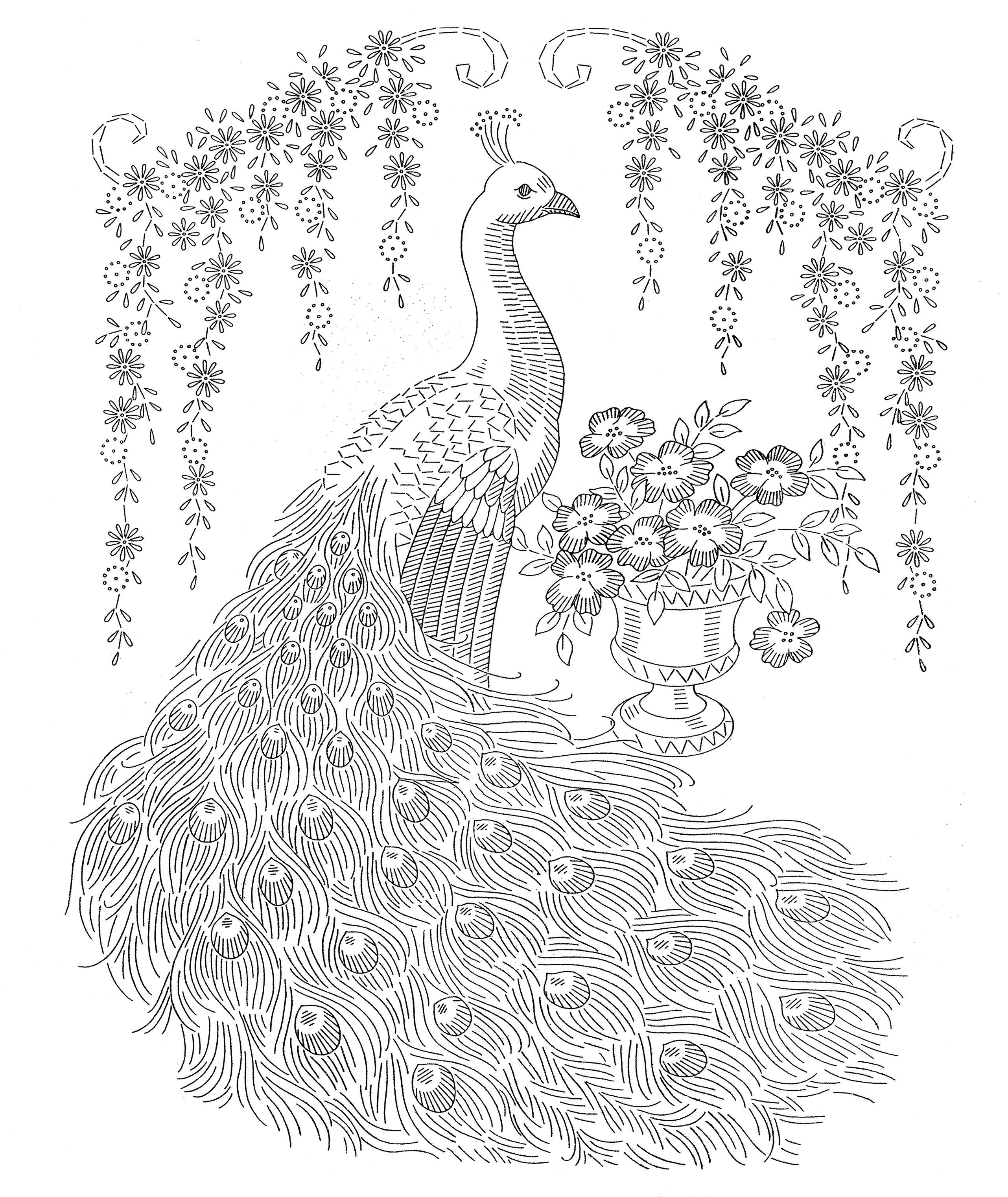 ![Павлин раскраска]()