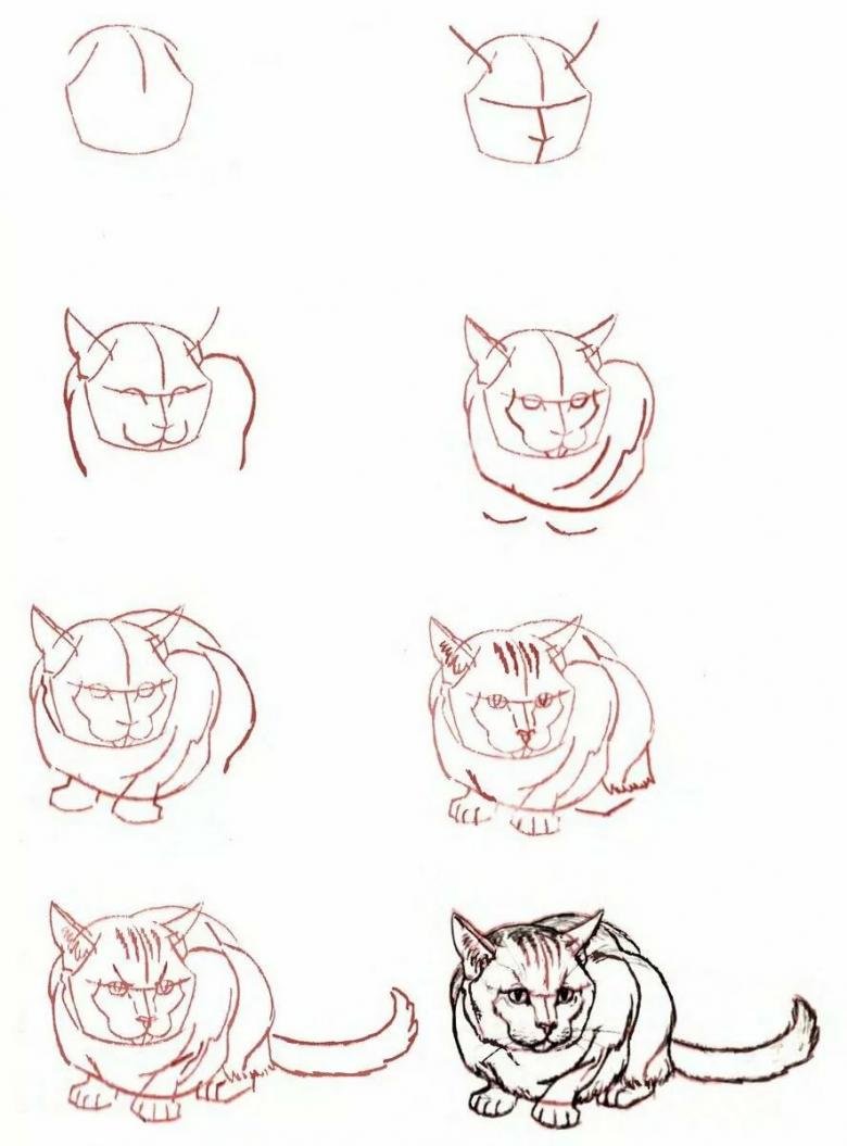Поэтапное рисование кошки