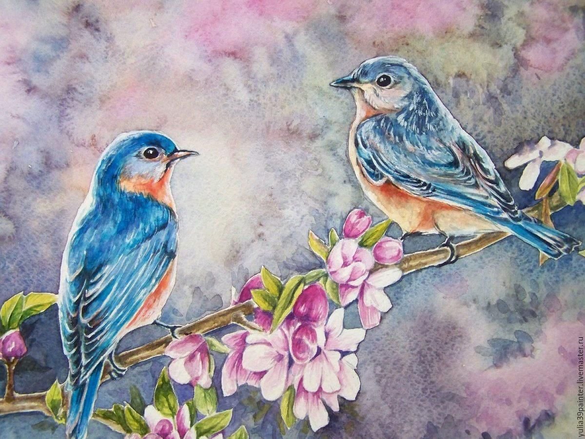 Птички нарисованные акварелью