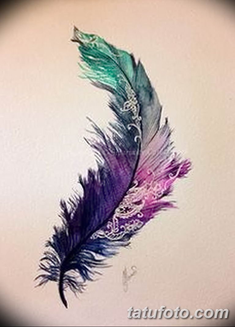 ![Тату перо цветное]()