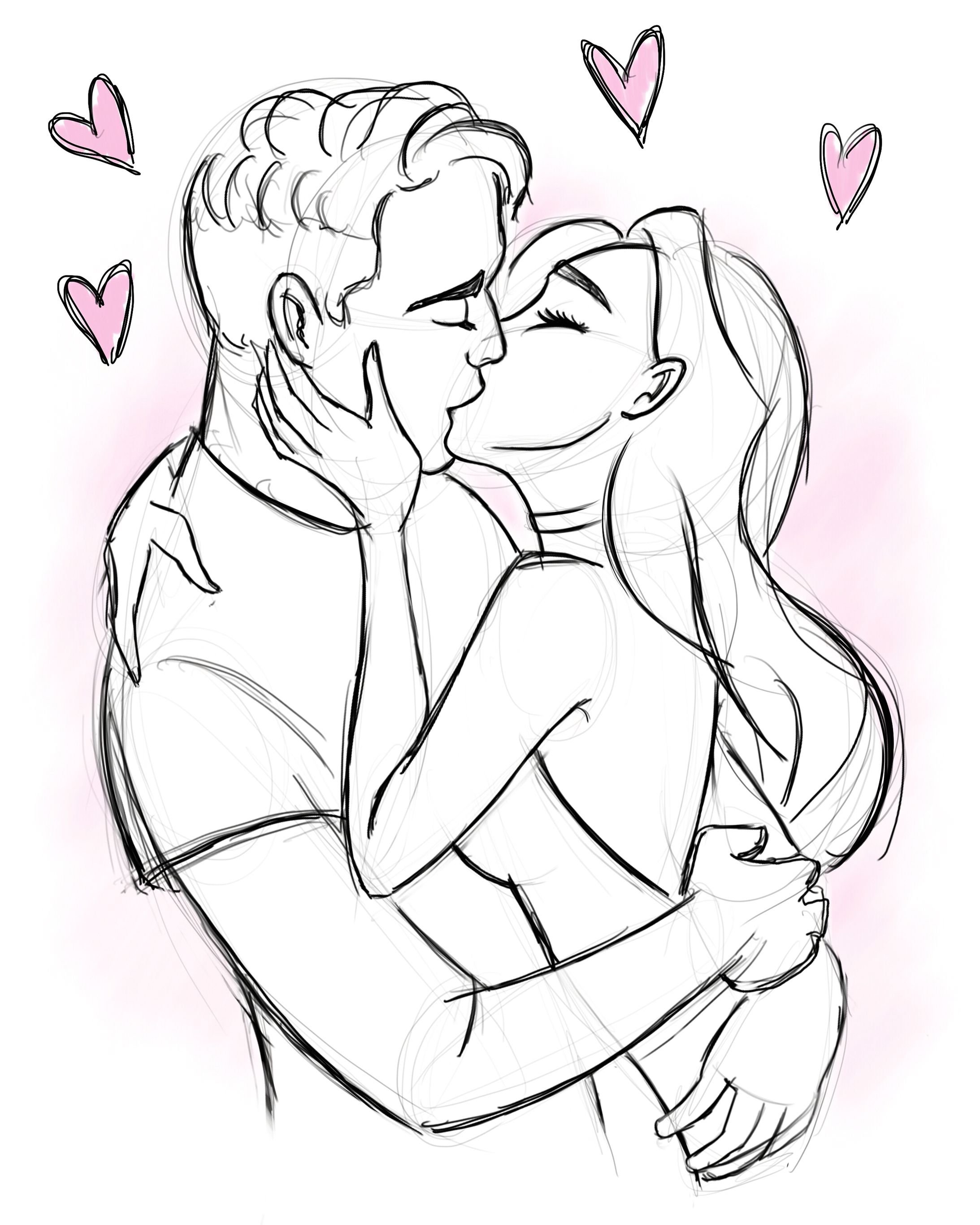 Рисунки карандашом поцелуй влюбленных