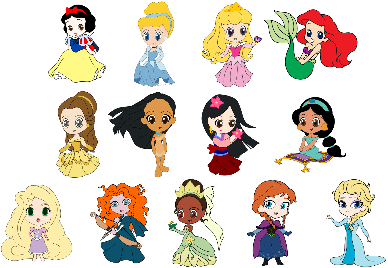 Диснеевские принцессы в стиле Чиби