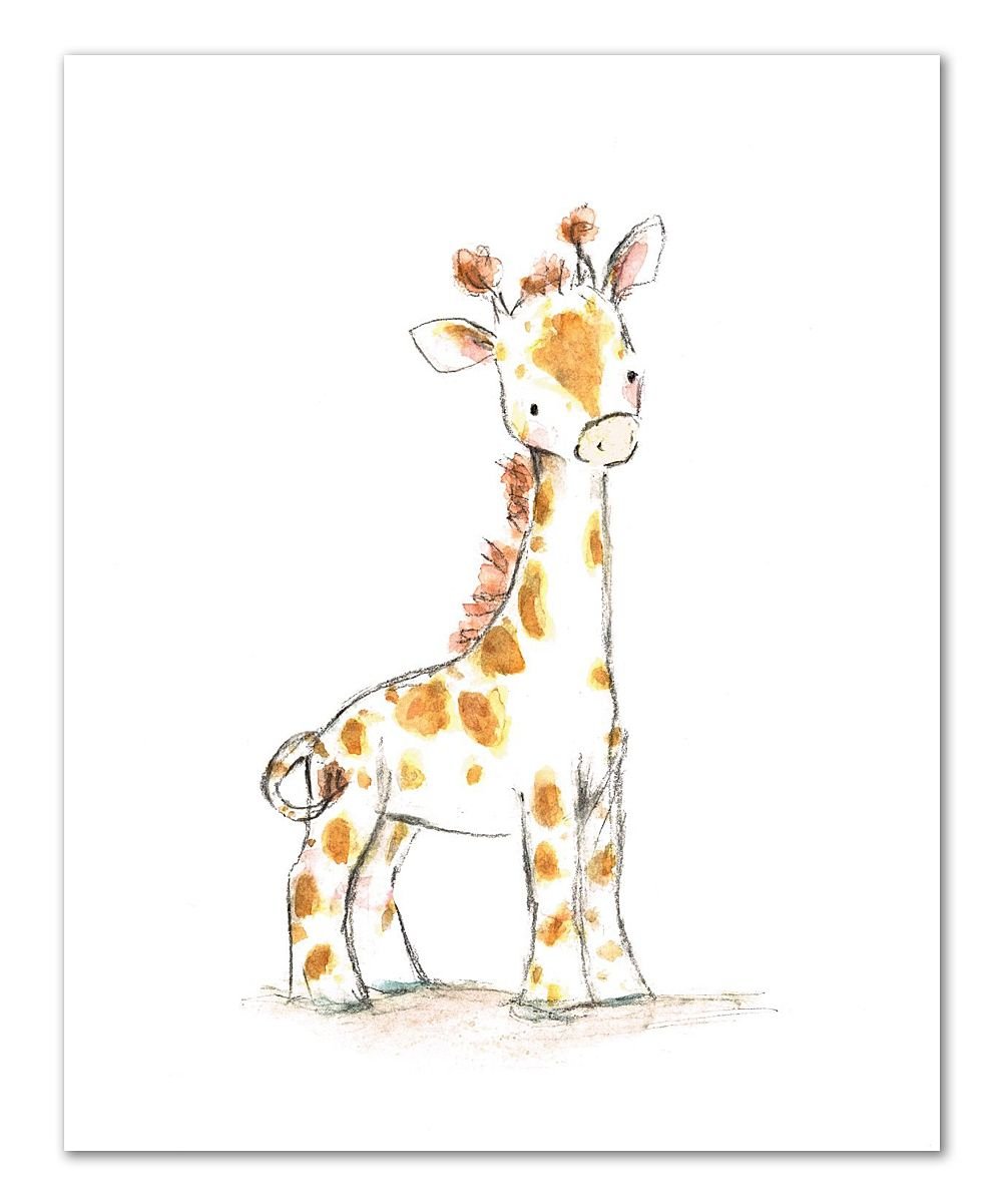 ![Жираф акварелью для детей]()