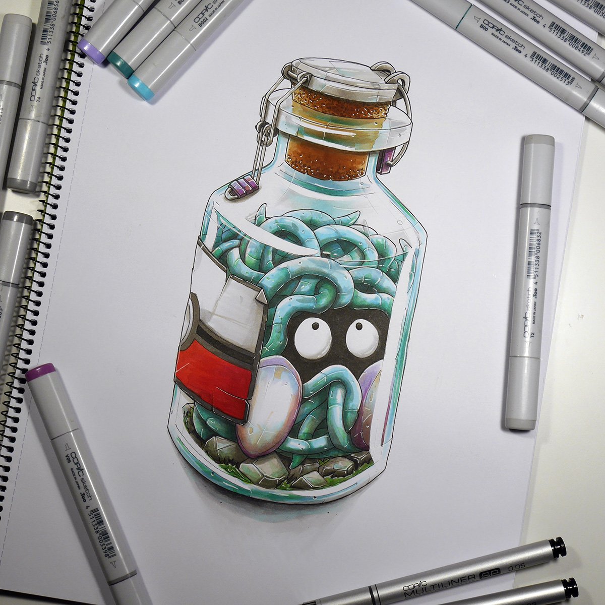 ![Бутылка скетч маркерами]()