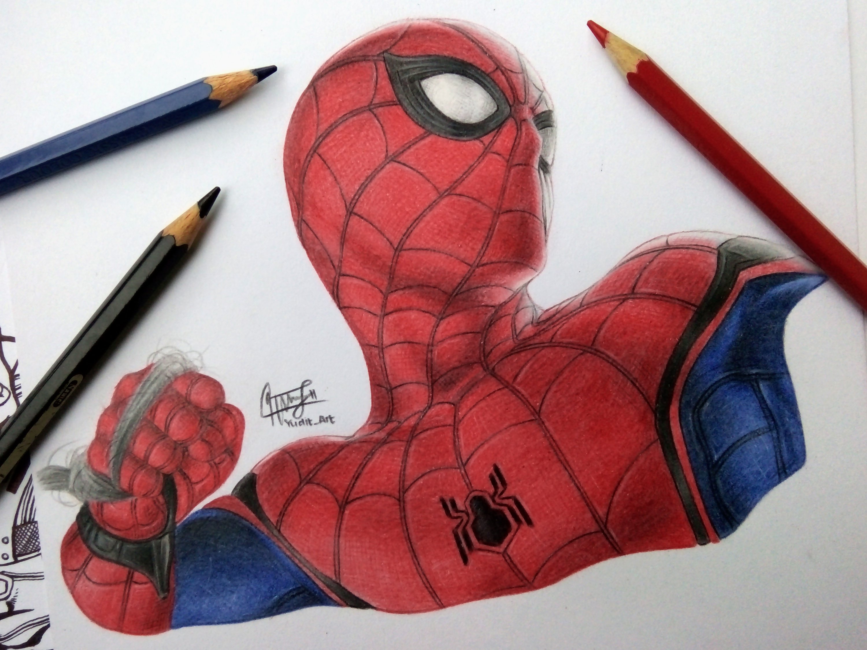 ![Человек паук цветными карандашами]()
