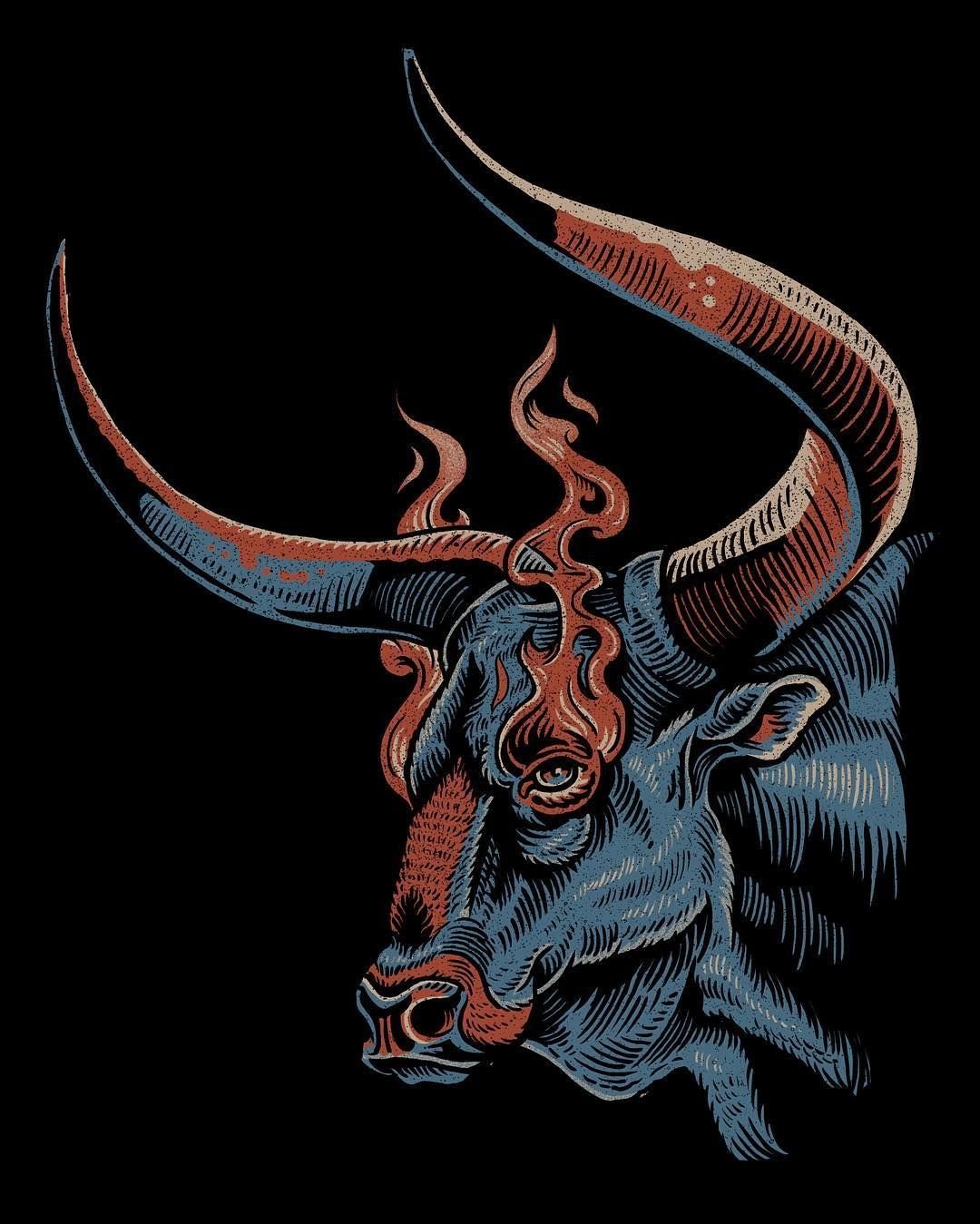 ![Таурус бык масляная живопись]()