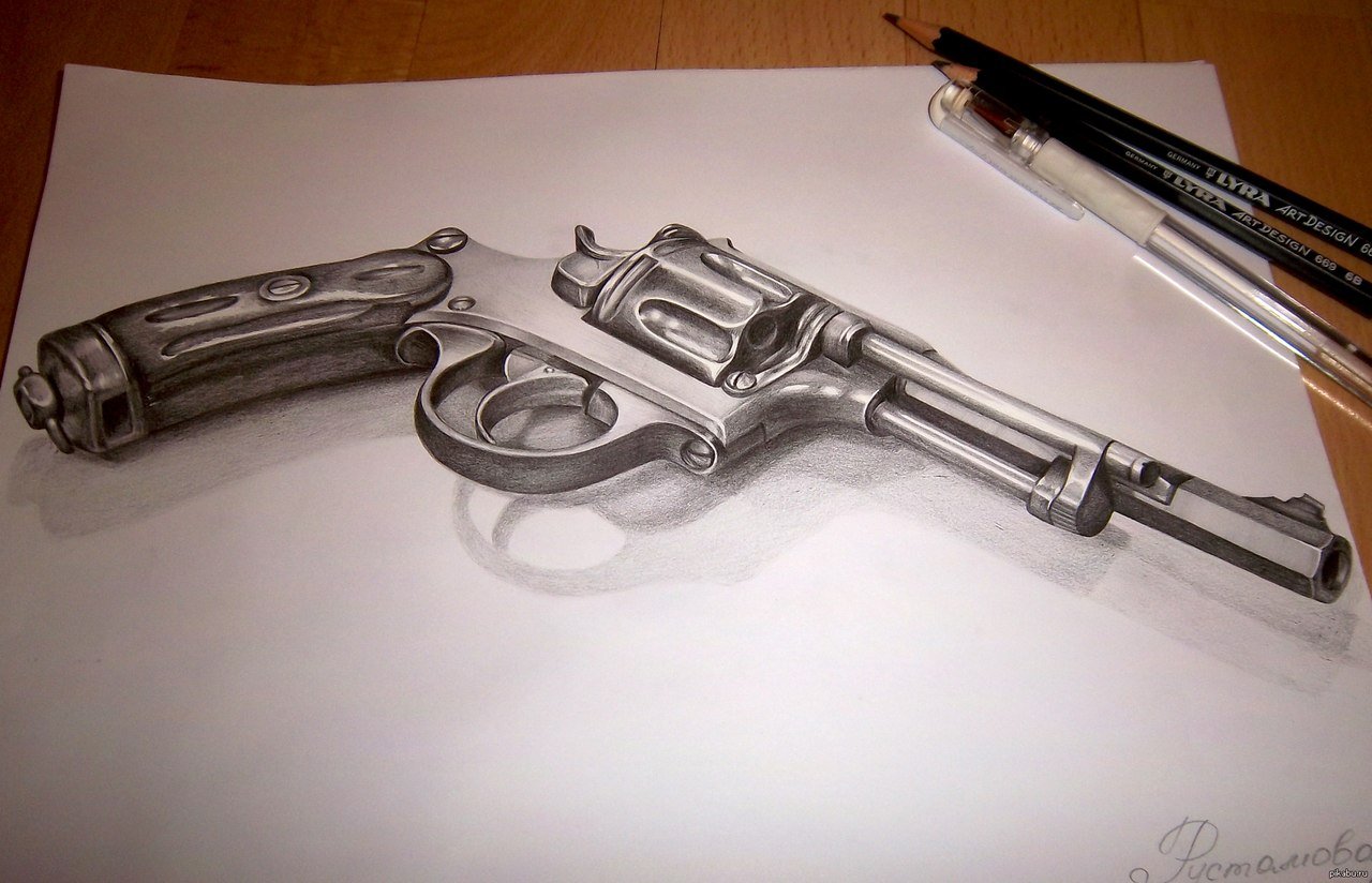 Пистолет рисунок карандашом