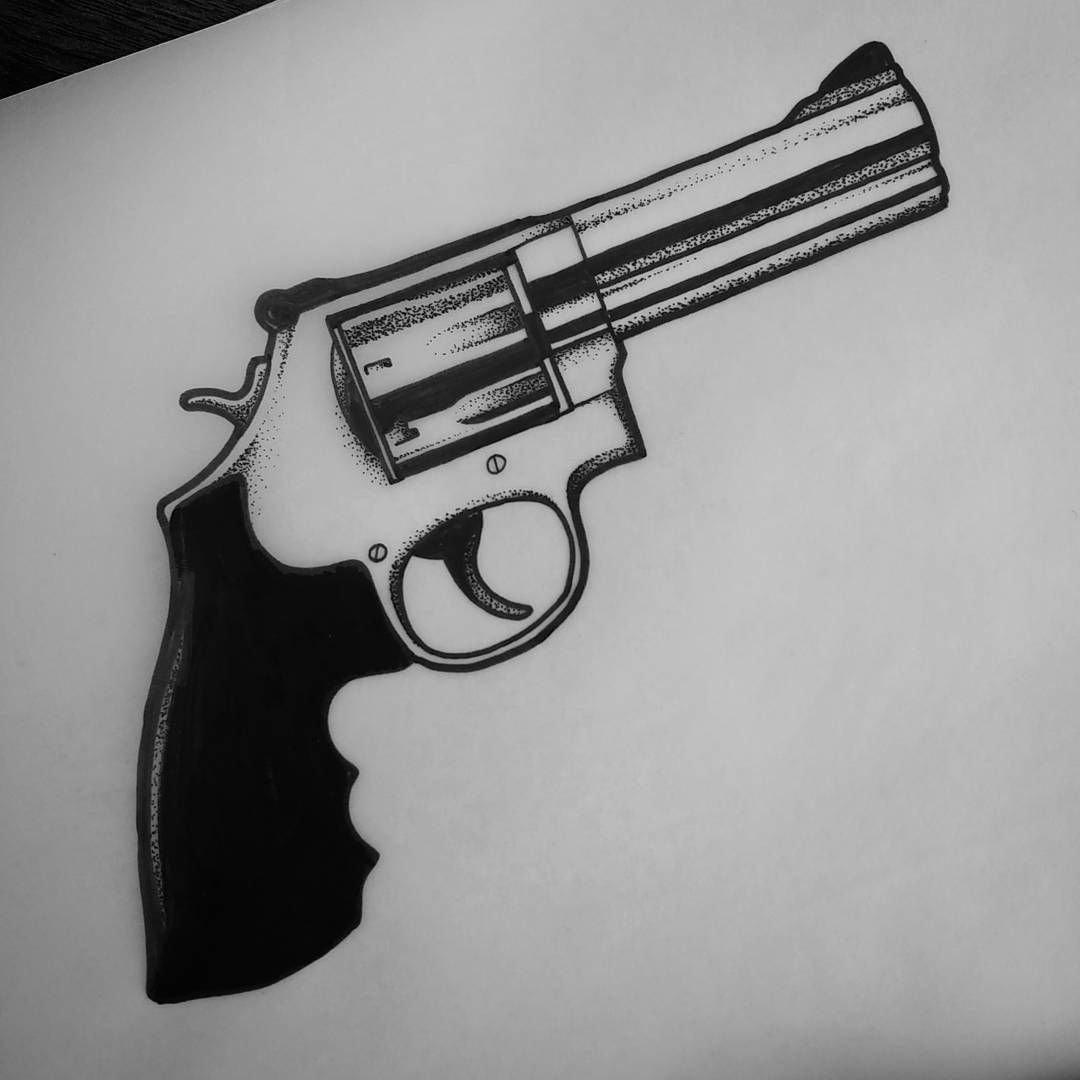 ![Револьвер тату эскиз]()