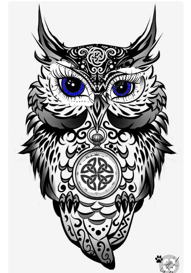 ![Сова тату эскиз]()