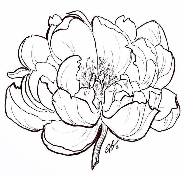![Пионы эскиз]()